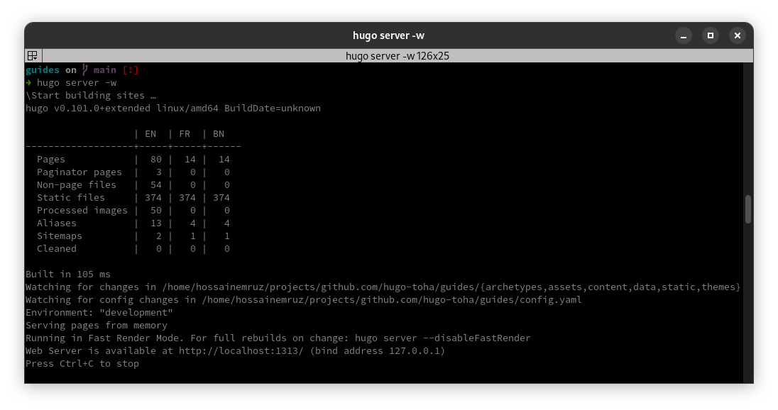 hugo server -w